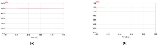 Figure 8 reports the appearance of the converter output voltage and current. As expected, these results show that the dimensioning of the transformer was carried out correctly. Indeed, simulation results display input and output voltages of the micro transformer equal to 100 V and 50 V, respectively, with a current Iout = 2 A. These results are in excellent agreement with the specifications.