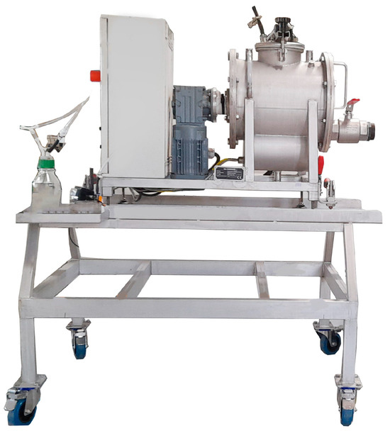 A 15 L CSTR with a working volume of 10 L was employed as the source of inoculum for the biomethanation experiments. The reactor was constructed using stainless steel cylindrical vessels that incorporated internal stirring blades for mixing (Figure 2) [20]. The reactor was operated in mesophilic conditions (37 ± 1 °C). Reactor agitation was maintained at 45 rpm, and the HRT was set to 3 weeks. Feeding was performed manually once per day and five times a week. A daily addition of 2.5 mL of a trace element solution was carried out, according to Capson-Tojo et al. (2017a) [20], to prevent any deficiency of these compounds during the digestion of FW and avoid the potential accumulation of VFAs.