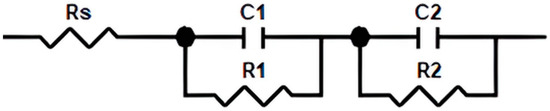 Equivalent circuit modeling, as seen in Figure 1, was utilized to evaluate the fuel cell’s behavior and the ohmic losses, which are illustrated by the resistors described in the model [47,48]. Ohmic losses indicate the internal resistance of the cell, such as the resistance of electrodes, conductive plates, and the ion transport through the membrane. The resistance measurements through the circuit provide information on water management, which is a significant factor in fuel cell operation performance [49,50].