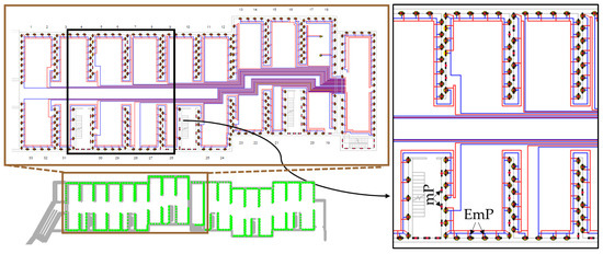 The thermal impact of the operation of the EmPs on the subsoil of the building depends on the quantity of solar heat injected and of the energy extracted during the heating season. The greatest impact is expected near each EmP, gradually decreasing towards the border of the geothermal field.