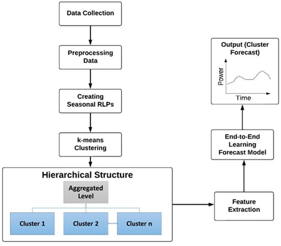 The proposed methodology is based on two main building blocks: building hierarchy following clustering and the end-to-end learning forecast model. Figure 1 illustrates the proposed framework for estimating the load of residential consumers.