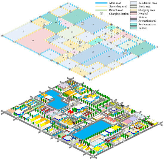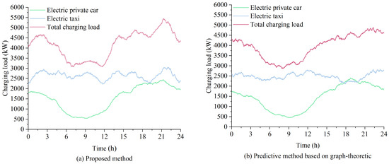 The transportation sector is currently undergoing a transition towards low-carbon and intelligent modalities [1]. Electric vehicles (EVs), renowned for their diminished greenhouse gas emissions compared to conventional fuel-powered vehicles, are attracting significant global attention [2]. Projections indicate that EVs will account for approximately two-thirds of the worldwide sales of light-duty vehicles by 2035 [3]. Nevertheless, the escalating ownership of EVs has led to a concomitant rise in energy supply demands, posing significant challenges to the stability of power grid operations. The proliferation of EV charging loads has led to issues such as heightened peak load demand, regional charging bottlenecks, and potential grid overload [4]. The establishment of more precise spatiotemporal distribution models for EV charging loads can facilitate research into the optimization of the deployment and management of EV charging stations [5,6], the operation and control of power distribution networks [7], the utilization and regulation of EV transportation distribution coupled networks [8], and the optimized scheduling of charging and discharging processes [9,10,11], thereby promoting the sustainability of energy resources.