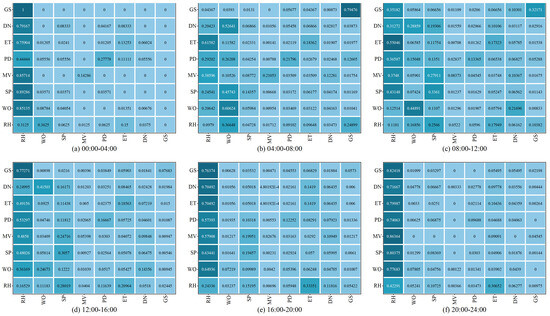 The travel purpose transfer probability matrix during different periods is shown in Figure 3.