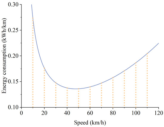 The relationship between energy consumption per unit distance and speed is illustrated in Figure 5.
