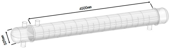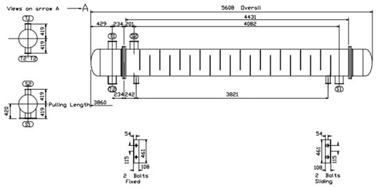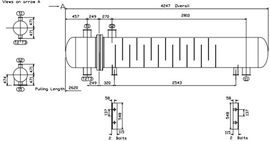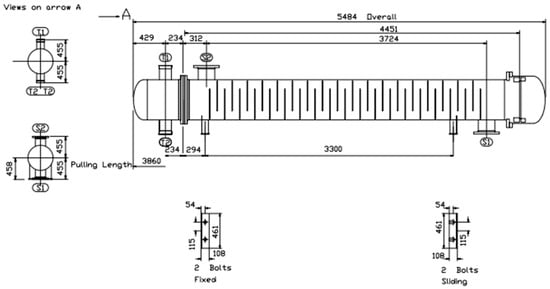 The designs of the three distinct heat exchangers are individually depicted in Figure 3, Figure 4 and Figure 5. The cleaning of U-tube heat exchangers is challenging due to the presence of elbows in the heat exchange tubes. Cleaning a floating-head heat exchanger requires removal of the heads at both ends, resulting in high cleaning costs. In contrast, fixed tube sheet heat exchangers are characterized by their simple structure, cost-effectiveness, and compact size. Therefore, this study ultimately adopts the use of fixed tube sheet heat exchangers.