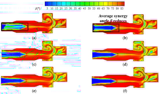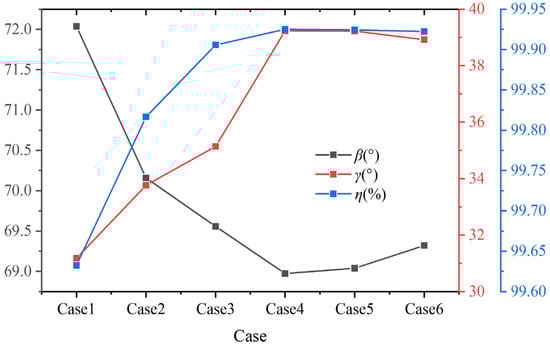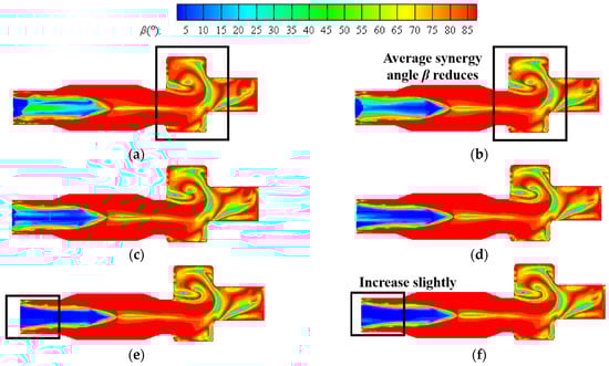 - As the hydrogen content increases, the volume average synergy angle β initially decreases and subsequently increases, while the synergy angle γ and combustion efficiency first increases and then decreases. Hydrogen addition can optimize the heat transfer performance of biomass syngas combustion and improve the comprehensive heat transfer performance, but excessive hydrogen addition may reduce its positive effect. The addition of hydrogen has a slight impact on combustion efficiency, and the deviation between the maximum and minimum values does not exceed 0.3%.