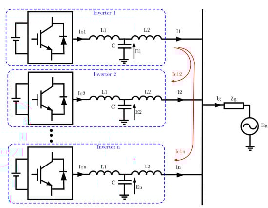 Diagram of n inverters with LCL filters connected in parallel.