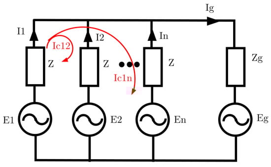 where is the grid current component from unit i, and is the circulating current between units i and j. The resultant circulating current component of unit i can be represented by a single term ; hence, (2) can be rewritten as follows: