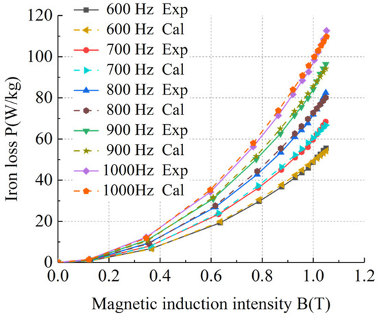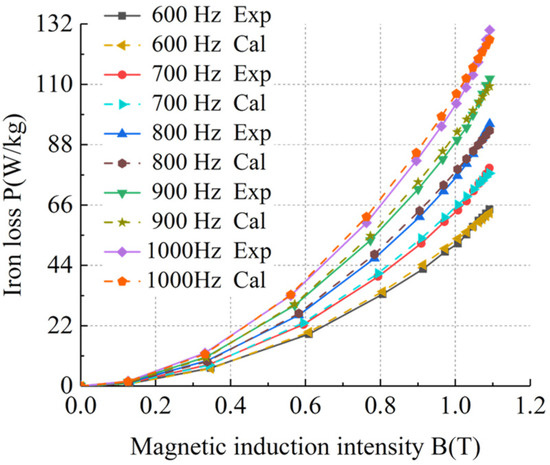 Comparison of the improved iron loss model of silicon steel sheets under 600–1000 Hz at room temperature.