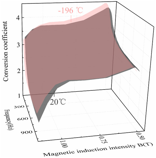 The objective function Formula (11) was determined according to the change in the three-dimensional surface in Figure 25. The fitting functions of the conversion coefficient at room temperature and ultra-low temperature were obtained by surface fitting, as shown in (12)–(13).