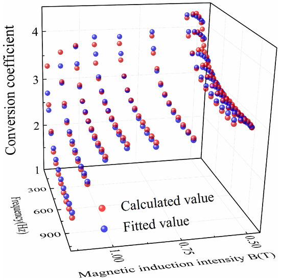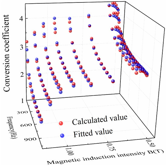 In order to verify the accuracy of the fitting function of the hysteresis loss coefficient and eddy current loss coefficient, the error between the fitted value of the fitting function and the calculated value was calculated based on the error formula.