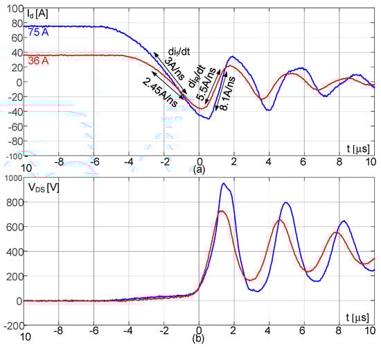 Snappy recovery mainly occurs in SiC MOSFETs with high breakdown voltage (≥1700 V), which are designed to work at very high dc-link voltage, and consequently, very high drain-source voltage slopes could arise [44].