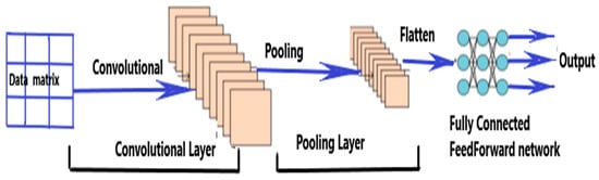 Figure 9 shows the CNN architecture, consisting of stacking up the convolutional, pooling, and fully connected layers. The convolution layer has filters to extract features from the input pattern. The filters perform convolution processes through weight sharing and thus reduce the intricacy of the computational operations and increase the network performance [27]. The down-sampling process, used to reduce the dimensions of the features and overfitting, is performed by the pooling layer. The fully connected layer is used to learn the non-linear combinations of features and produces the output [28]. The CNN method has issues in learning relationships between time series data. A combination of RNN and CNN is used to mitigate this challenge.