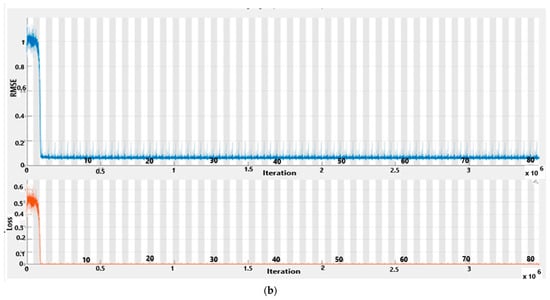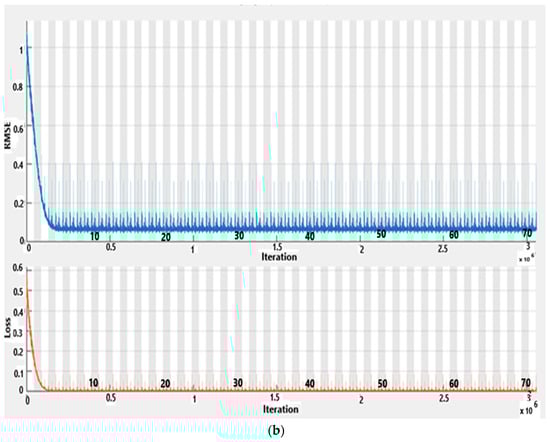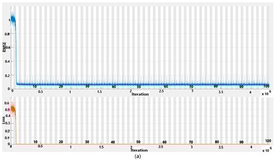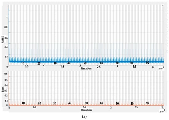 Both RMSE and loss progressively decreased as the iterations increased. An indication measure of how a model can predict the expected outcome is called a loss function. A loss function is a commonly used metric to evaluate a model’s misclassification rate, i.e., the proportion of incorrect predictions. The deep learning network learns by means of the loss function. The loss function tends to be large when the predictions deviate significantly from the actual results. Optimization algorithms are used to ensure that the loss function learns to minimize the error in the prediction process. In general, loss functions are classified into two major categories, namely, regression losses and classification losses. In our work, the loss function is a regression loss because it is used to predict continuous values.