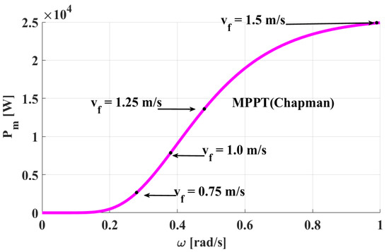 The MPPT curve for the 25 kW turbine is displayed in Figure 4.