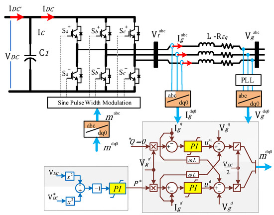 The presence of in (24) and (25) indicates the coupled dynamic and . Considering that and , based on the dq0-Frame, it is possible to obtain