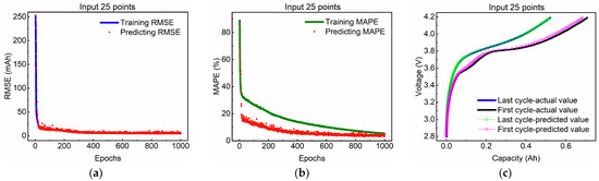 The model evaluation metrics and training results for voltage window of 250 mV: (a) RMSE; (b) MAPE; (c) estimation curves.