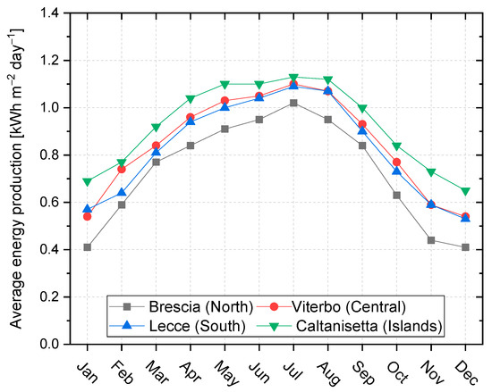 - Following the trend already observed in Figure 6, the levelized cost of methane decreases when the site location shifts towards the south of Italy. It decreases by about 1.0–1.2 € kgCH4−1 when moving from the north to the center and early south of Italy, and by 1.9 € kgCH4−1 when moving to the deep south;