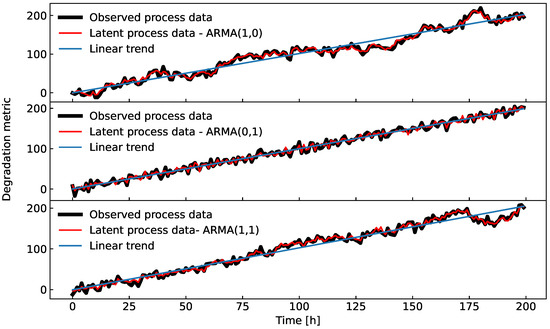 In the third case, the latent variable suffers from oscillations, modeled by an autoregressive moving-average (ARMA) [21] process. This example aims to demonstrate the ability of the proposed method to account for the additional uncertainty in the FHT caused by the oscillations in the latent variable.