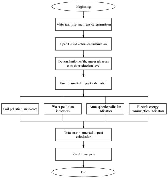 - In the second stage, specific indicators (soil pollution, water pollution, atmospheric emissions, and electric energy consumption) per unit mass of products are determined according to the Russian reference data;