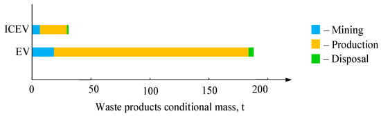 - The mass of extracted natural resources and formed waste products for EV production is 6 times greater than for the ICEV due to the use of ores with a low metal content;