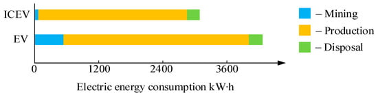 - Electric energy consumption during EV production is higher than that of the ICEV due to the energy-intensive processes of materials extraction and production.