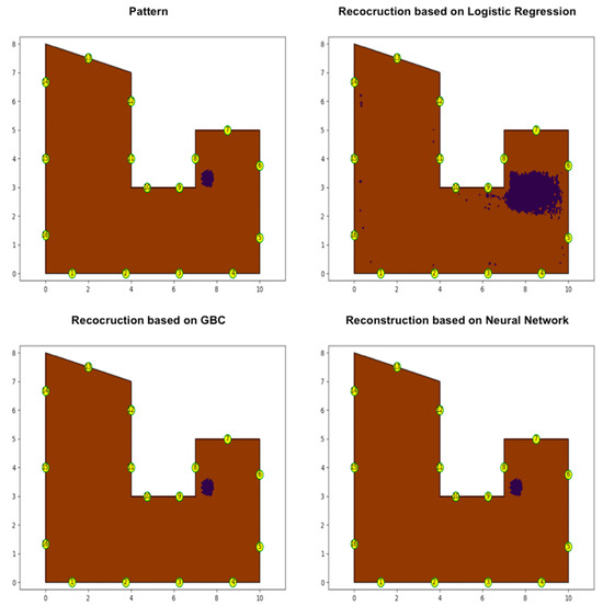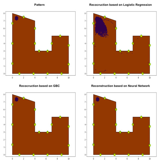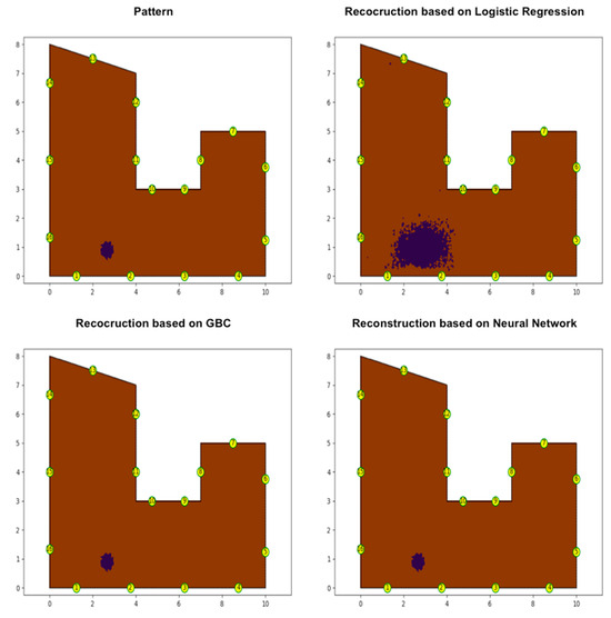 Pattern and reconstructions based on LR, GBC, and the NN—Example 1.