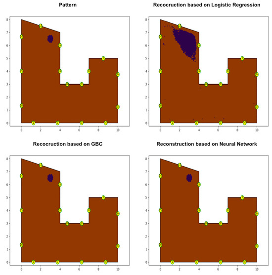 Pattern and reconstructions based on LR, GBC, and the NN—Example 3.