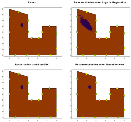 Pattern and reconstructions based on LR, GBC, and the NN—Example 4.