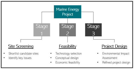 Flow chart of Marine Power Project development, showing stages 1 to 3, based on information provided by the European Marine Energy Commission guidelines [30].