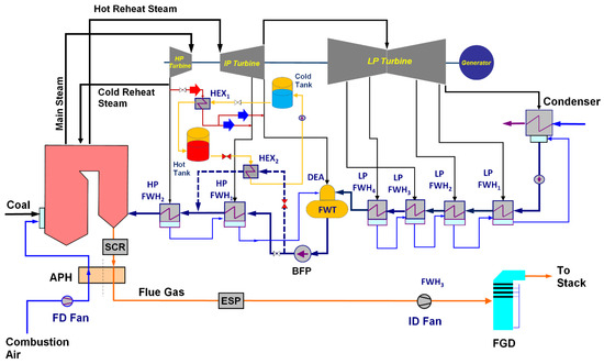 Power system flexibility describes the degree to which a power system can adjust the electricity generation in response to both anticipated and unanticipated variability. Flexibility indicates the capacity of a power system network to reliably sustain supply during transient and large demand–supply imbalances. A techno-economic definition by the International Energy Association (IEA) states that, “Power system flexibility is the ability of a power system to reliably and cost-effectively manage the variability and uncertainty of demand and supply across all relevant timescales” [37]. Improving flexibility of a coal-fired power plant through integration of energy storage systems (ESSs) and determination of the ESS impact on the flexibility and economics of a representative coal-fired power plant were the main objectives of this study.