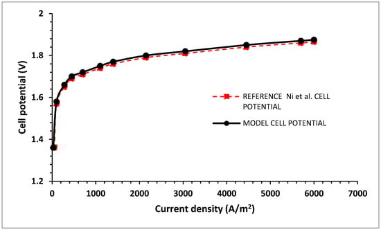 Comparing PEME’s cell potential-current density to that of Ni et al. [61].