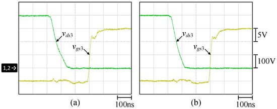 ZVS turn-on waveforms of S10 at (a) 100% load; (b) 10% load.