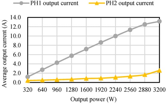 Figure 44 shows the average output current curves of each phase circuit at different loads without current-equalization control enabled, such that the resonant capacitor bias voltage of each phase circuit is locked at 0 V. From this figure, it can be seen that the average output current of phase 1 is significantly higher than that of phase 2 under each load.