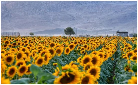 Sunflowers, among crop plants, have global significance, being cultivated in diverse geographical latitudes and climatic conditions and playing a crucial role in energy production [9]. Iran, the main sunflower producer with an output exceeding 4380 tons, has a cultivated area of 5686 hectares. In particular, the West Azerbaijan province, specifically Khoy County, contributes 303 hectares to the extensive cultivation areas of this crop.