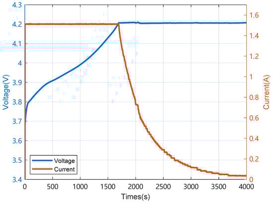 The charging process consisted of two modes: constant current (CC) mode and constant voltage mode. A constant current of 1.5 A was applied in CC mode until the voltage reached 4.2 V. This was followed by constant voltage mode until the current declined to 20 mA.