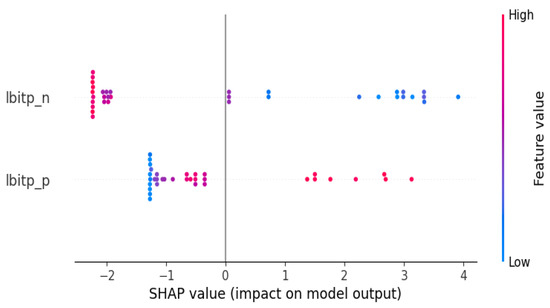 The importance or contribution of every feature to the entire dataset must next be ascertained. It is decided to go with the bee swarm plot as a possibility. Concerning this methodology, the features are also arranged according to their impact on forecasting. Furthermore, we can see how higher and lower feature values influence the prediction [40,41]. The outcomes of this approach are shown in Figure 7. The negative shock to BP contributes positively to prediction of BEC when its levels are low and negatively when they are high. This implies that there is a positive influence on BEC forecasts during periods of notable drops in Bitcoin value, which may indicate more energy use during market downturns.