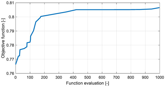 Objective function vs. function evaluation during the optimization process.