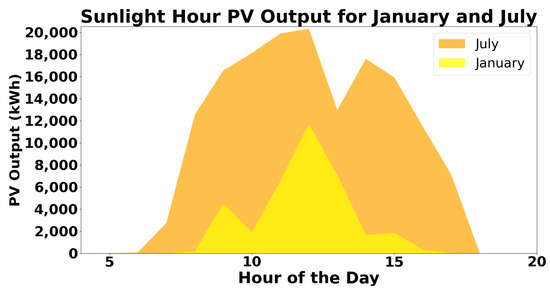 Figure 1 provides a visual representation of how PV output varies across different months. In January, which typically yields the lowest output, the available hours for PV energy production are reduced compared to July, the month with the highest energy output. Additionally, the peak outputs exhibit considerable variation across different times of the year. The Figure demonstrates that the fitted distribution generated outputs mimic the impact of environmental conditions on PV energy production present at different times of the year.