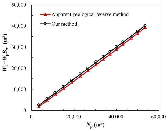 | p (MPa) | Bo Dimensionless | Np (m3) | Wp (m3) | Apparent Geological Reserve Method (We − WpBw) (m3) | Our Method (We − WpBw) (m3) | Relative Discrepancy (%) |