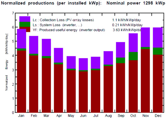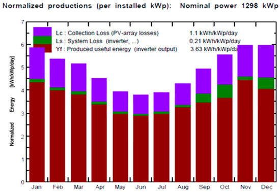 - Normalized production: Normalized production is the ratio of actual energy production to the installed capacity of the PV system. This is usually expressed as kilowatt-hours per kilowatt-peak (kWh/kW) per year or month. The normalized production parameter helps evaluate the system’s performance relative to its installed capacity.