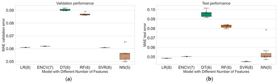 When building a machine learning model, it is not always clear which of the features are important for it (i.e., have a connection with the target variable) and which are redundant (or noise). Removing redundant features allows you to better understand the data, as well as reduce model tuning time, improve its accuracy, and facilitate interpretation [36,37]. Sometimes this task may even be the most significant; for example, finding the optimal set of features can help decipher the mechanisms underlying the problem under study. Feature selection approaches can be divided into two groups. Unsupervised methods [38,39] do not use information about target data values. They are focused on analyzing the structure of data without considering any dependence on the variable that the model will have to predict. These methods look for patterns based on input data. Supervised feature selection methods [40], on the other hand, use target values when analyzing data. These methods select those features that are most significant for predicting the target variable. It is important to consider that the results of feature selection can greatly depend on the hyperparameters of the model, which must be carefully selected. Supervised methods most often reveal only linear relationships between features and target values.