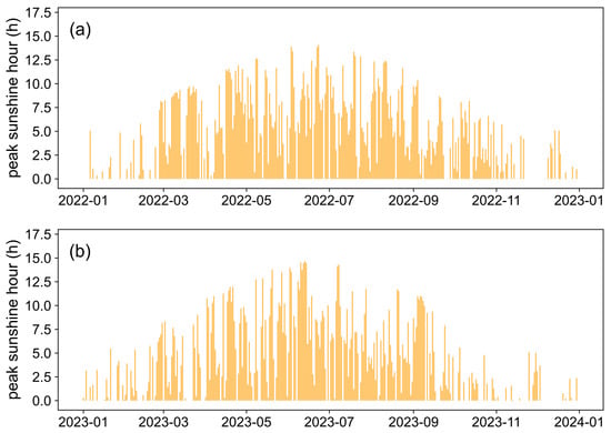 Daily peak sunshine hour of (a) Hamburg-Fursbüttel; (b) Sylt.