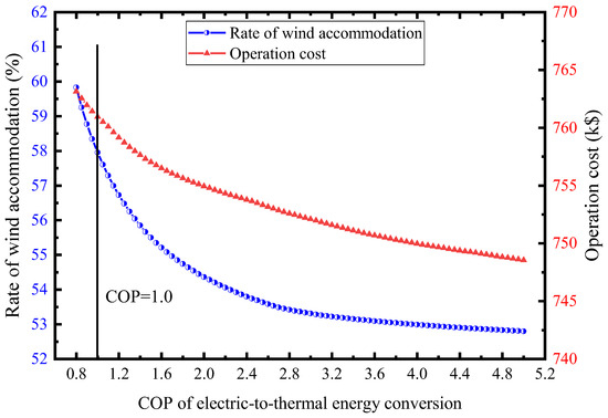 A low-carbon society requires a large-scale consumption of renewable energy [1,2]. However, the fluctuation and uncertainty of renewable energy electricity (REE) impact the power grids and general energy systems [3]. The electricity–heating system combines the power grid and heating networks, improves its power supply flexibility through the coupling between different equipment, and has the potential to a achieve large-scale consumption of renewable energy [4,5].