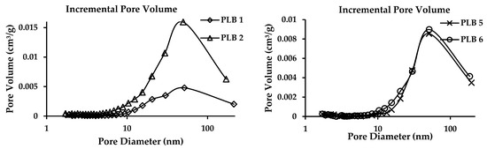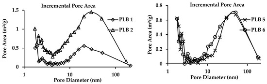 Incremental pore volume and area for PLB 1, PLB 2, PLB 5, and PLB 6.