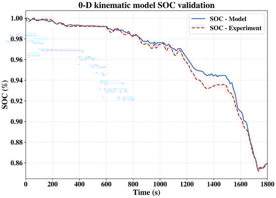 A comparison of the predicted SOC values from the vehicle model and the experimental data of Micari et al. [39], for the WLTP cycles.