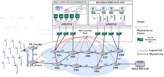 Central to the next-generation offshore wind farm’s IIoT–Edge data-acquisition system (shown in Figure 3) is a communication network that leverages SDN and NFV technologies to facilitate critical, latency-sensitive data transfer [63,64]. There is a need to model robust communication frameworks to guarantee seamless offshore wind farm operations [65].