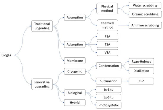 - Aghel, B.; Behaein, S.; Wongwises, S.; Shadloo, M.S. A Review of Recent Progress in Biogas Upgrading: With Emphasis on Carbon Capture. Biomass Bioenergy 2022, 160, 106422. [Google Scholar] [CrossRef]