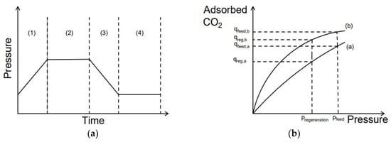 (a) Skarstorm cycle representation; (b) representation of adsorbent property of two different materials.