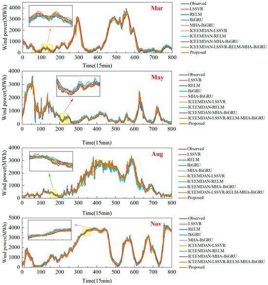 Figure 9. Comparison of four months of wind power forecast model results.